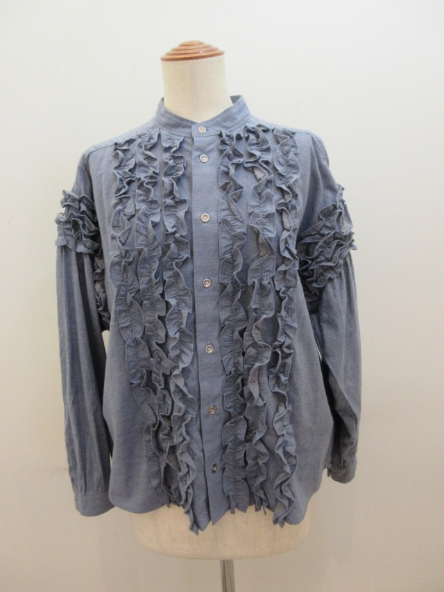 台襟、フリルブラウス、手洗い可。