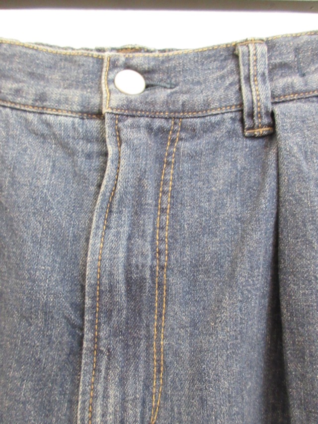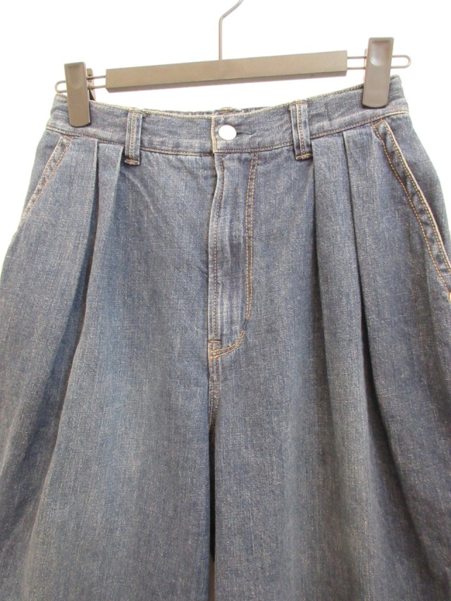 一部ウエストゴムツータックキュロットデニムパンツ。
