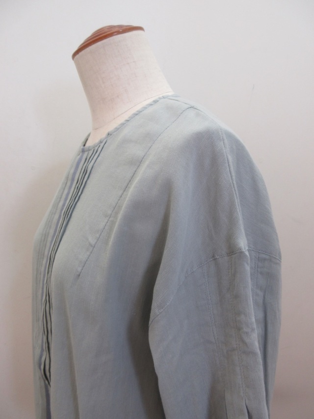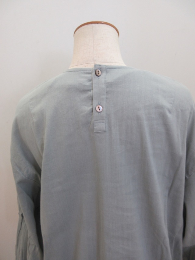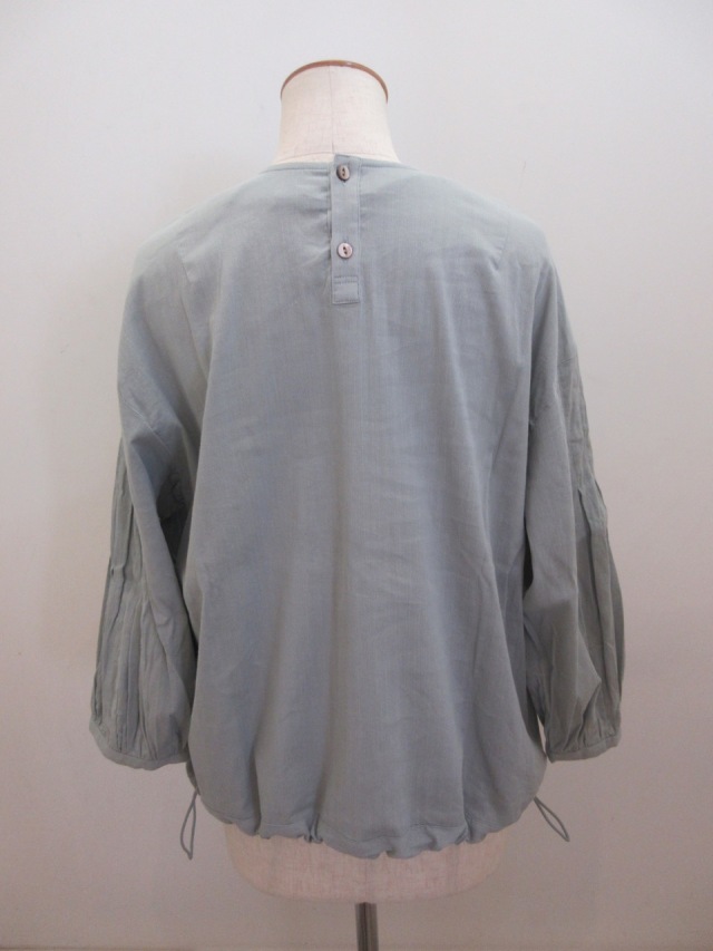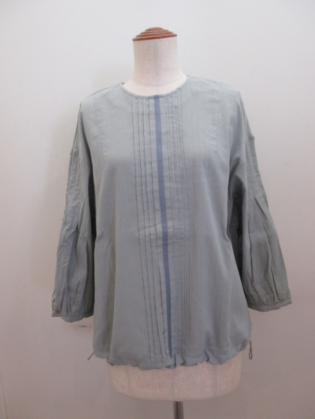 製品名KEI Hayama PLUS(ケイハヤマプリュス) 高島ちぢみコットンマイクロピケフロントピンタック裾ゴム入れ七分袖プルオーバー