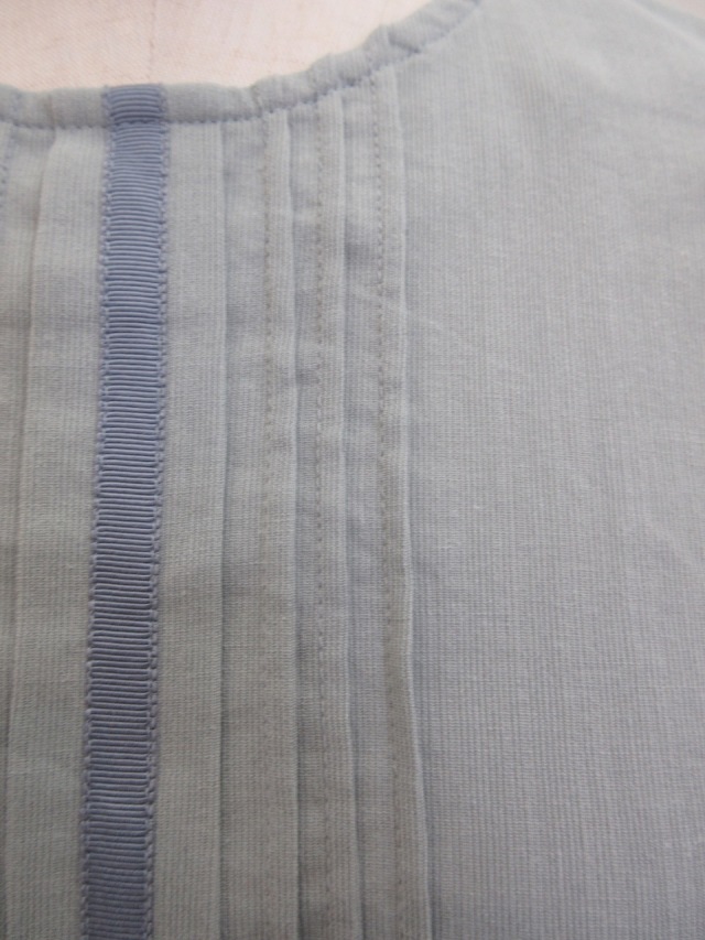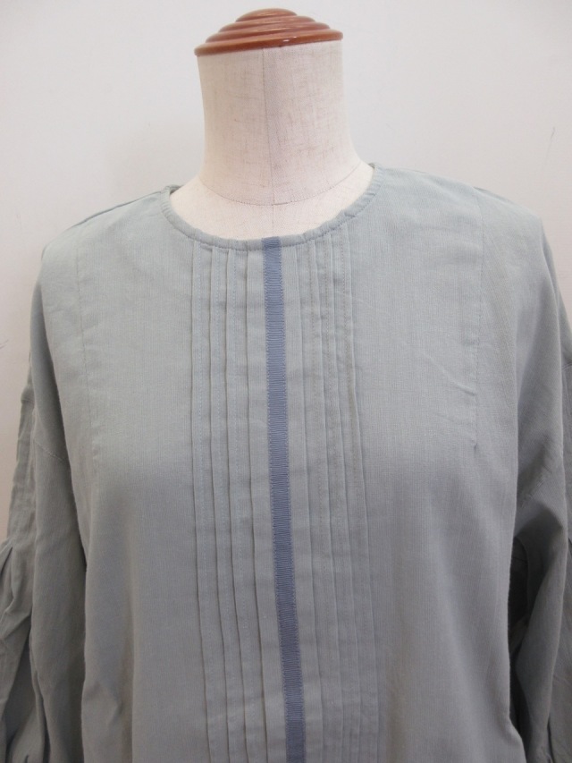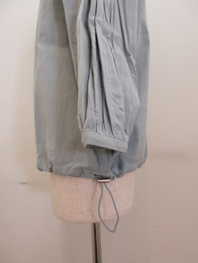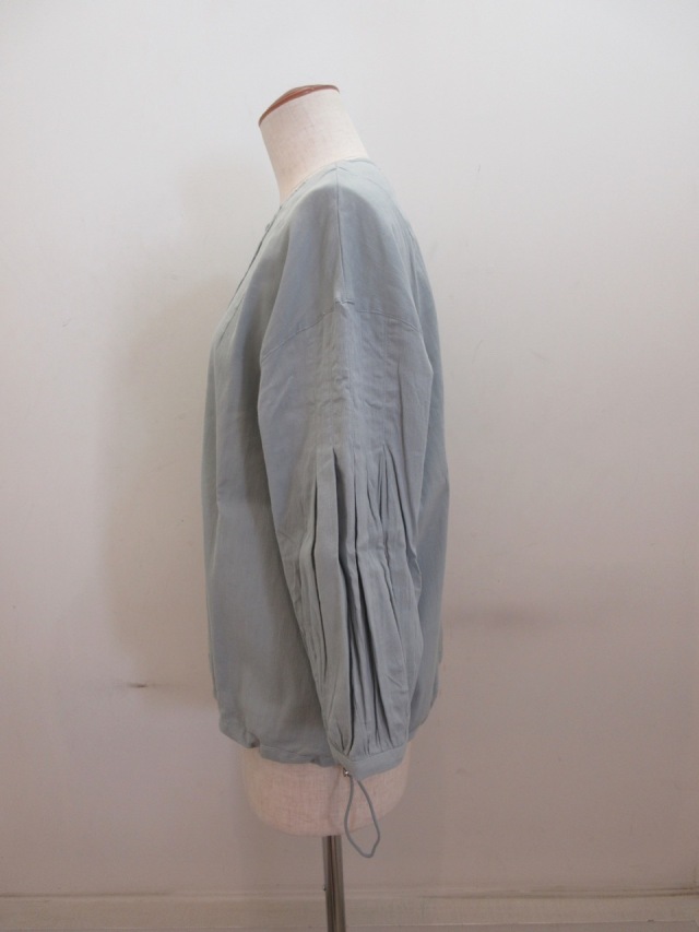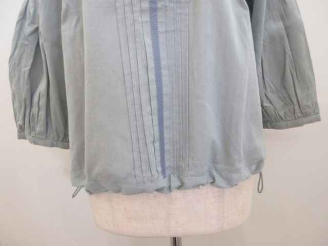 KEI Hayama PLUS(ケイハヤマプリュス) 高島ちぢみコットンマイクロピケフロントピンタック裾ゴム入れ七分袖プルオーバー:ブルー