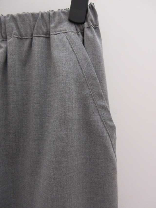 ウエストゴム に紐が入っております。 両サイドポケット付き、裏地無しですが透けることはございません。