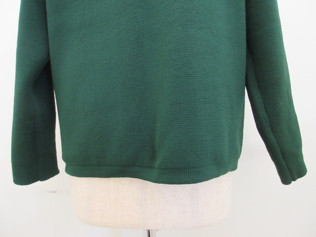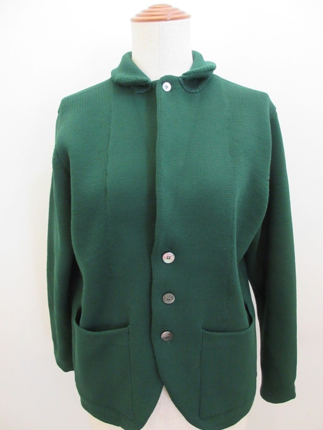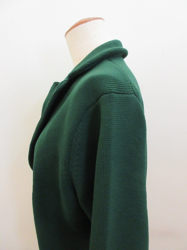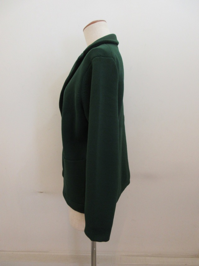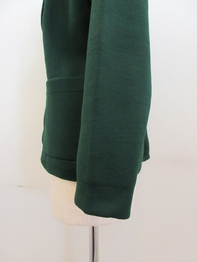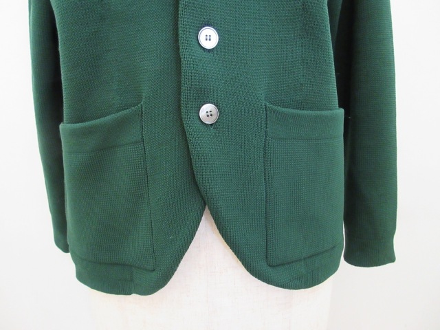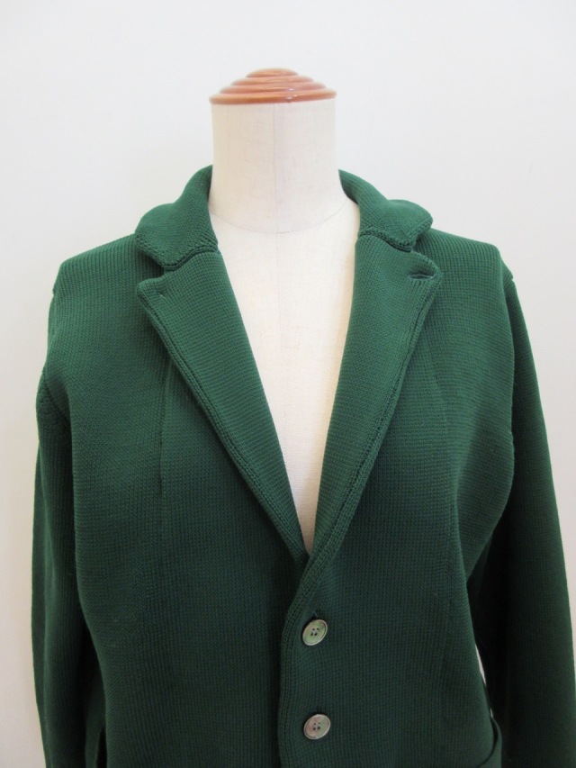 ポリエステル!00%7G,ニットTーラードジャケット。 とても軽く仕上がっております。 グリーンの色が落ちついていてとても綺麗です。