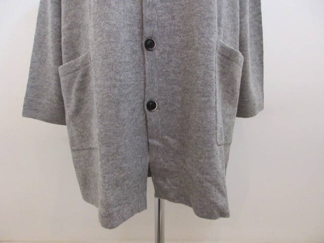 カテゴリー:ニット カーディガン サイズ:F カラー:杢グレー 素材:毛100% 日本製 アイテムサイズ:着丈80cm/肩幅176cm/バスト146cm/袖丈37cm