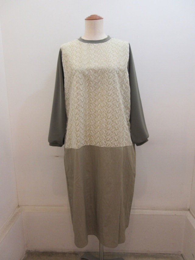 | 製品名 | KEI Hayama PLUS(ケイハヤマプリュス) ムーンボタニカル刺繍×ライトダンボールニット長袖ワンピース |