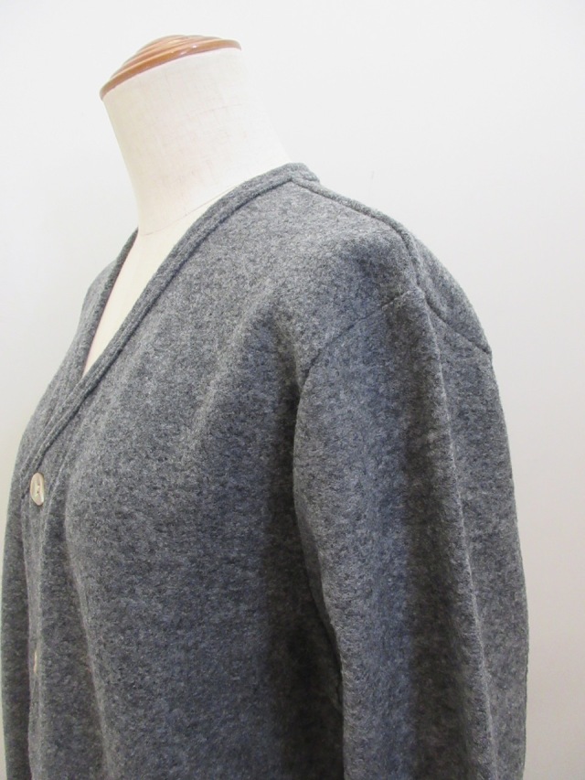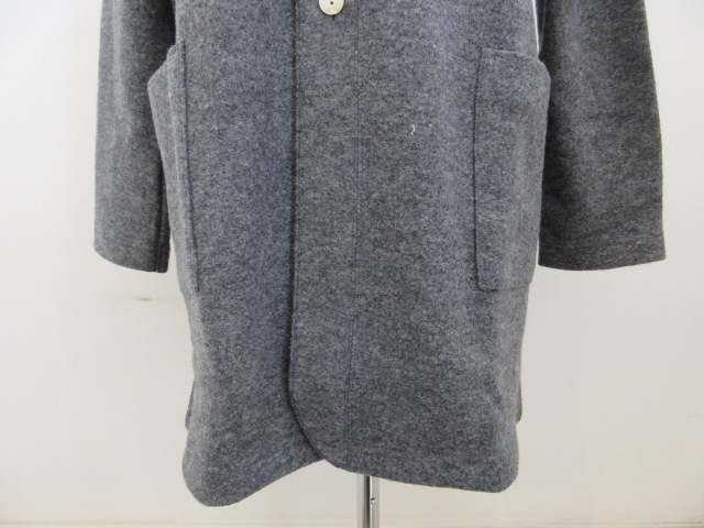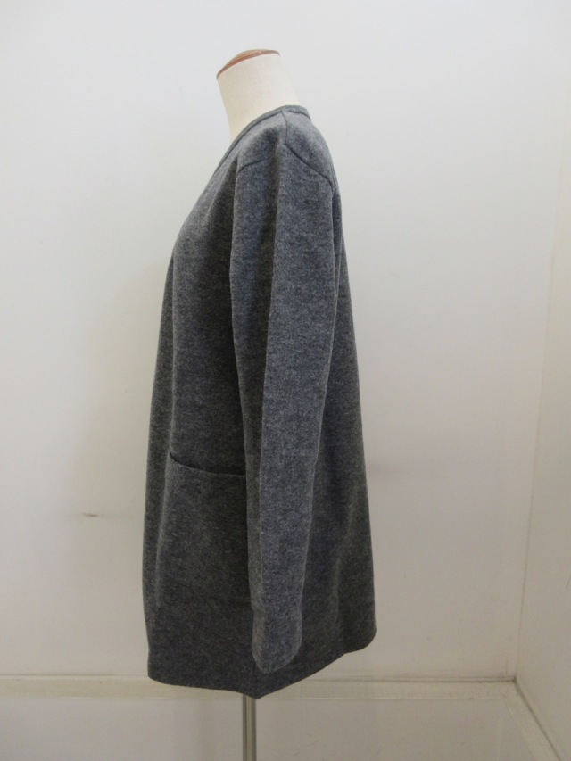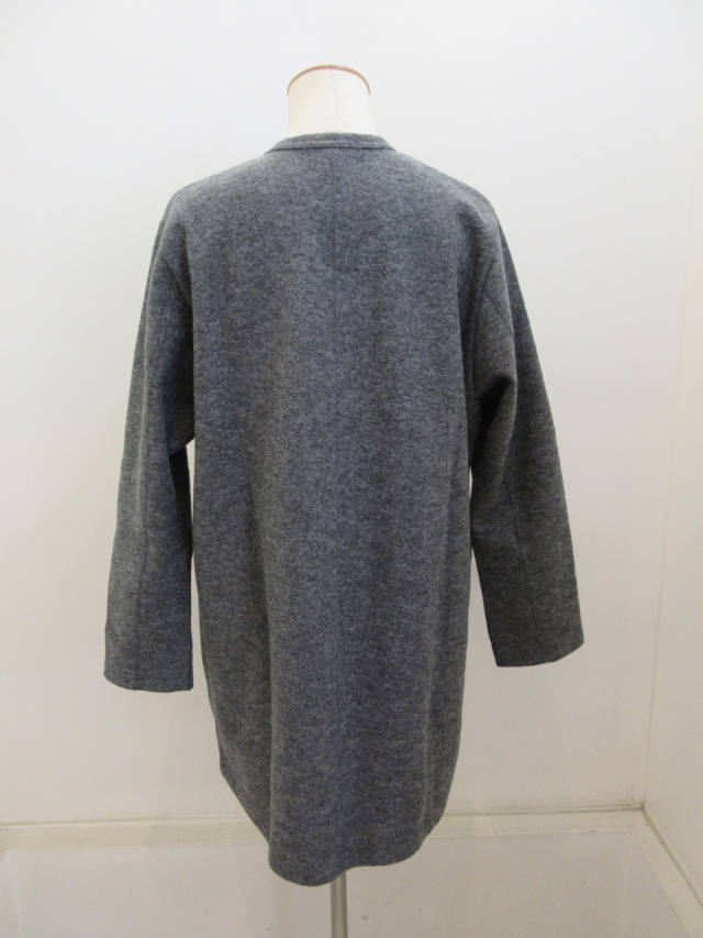 カテゴリー:ジャケット サイズ:F カラー:チャコール 素材:毛77%/ナイロン23% 日本製 アイテムサイズ F:着丈79cm/肩幅41cm/バスト112cm/袖丈55cm