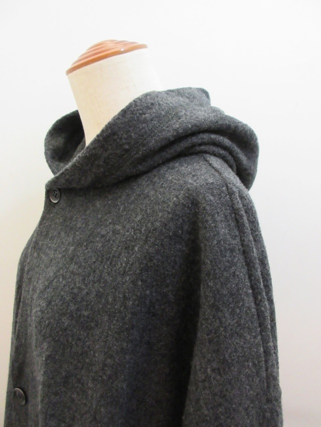 カテゴリー:コート サイズ:F カラー:チャコール 日本製 素材:毛100% アイテムサイズ F:着丈97cm/肩幅64cm/バスト132cm/袖丈44cm