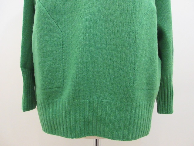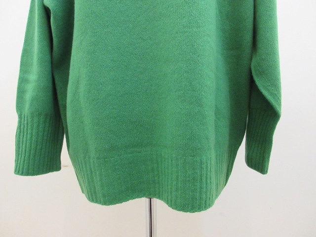 カテゴリー:ニット サイズ:F カラー:グリーン 素材:毛80%/ナイロン20% 日本製 アイテムサイズ:着丈68cm/バスト124cm/ユキ75cm