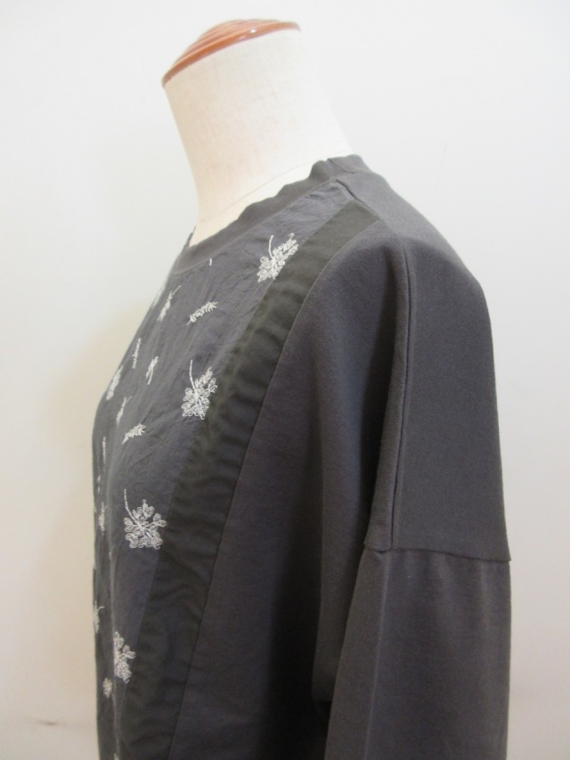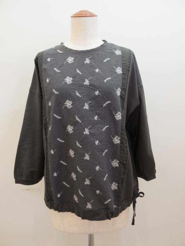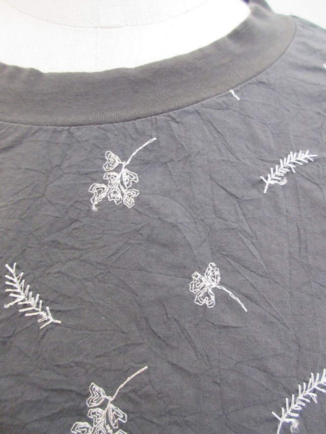 前身頃に施されたスモールリーフ刺繍がポイントの裾紐付きTシャツ。