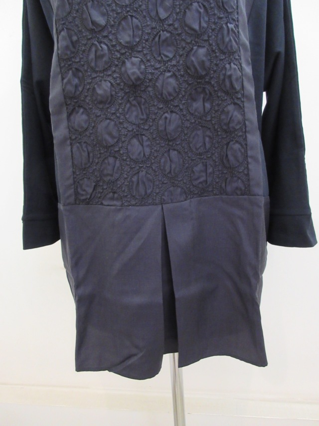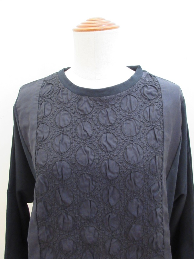 フロント中央にドットリンクルワッシャー刺繍が施されたチュニックTシャツ。