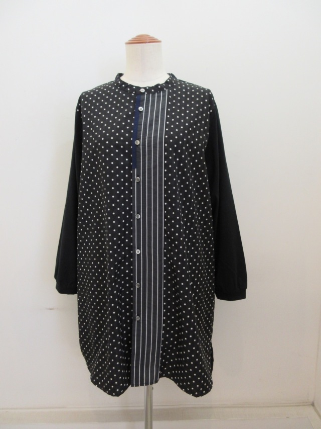 | 製品名 | KEI Hayama PLUS(ケイハヤマプリュス) サッカードット×ストライプスーピマ天竺異素材ミックス長袖チュニックブラウス |