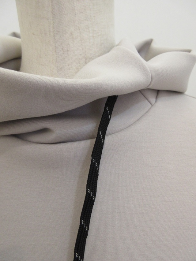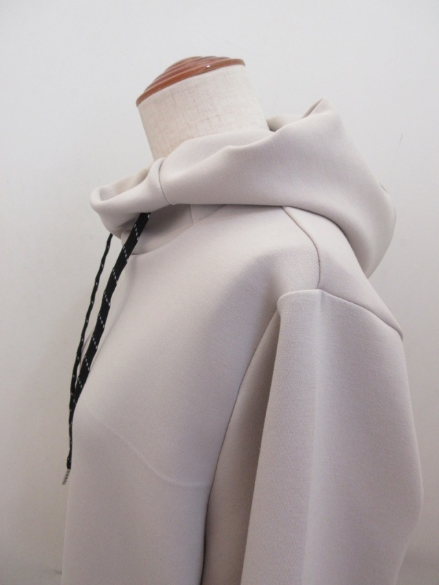 ダンボールニット素材を使った軽くて軽く肌触りの良い裾ゴム入りパーカー。