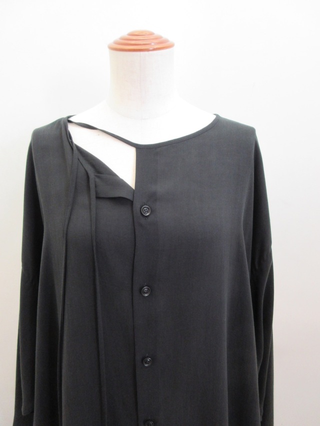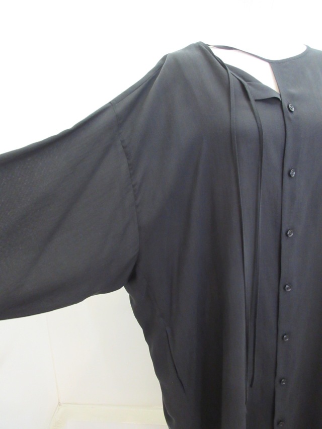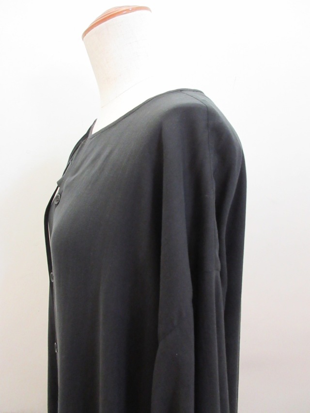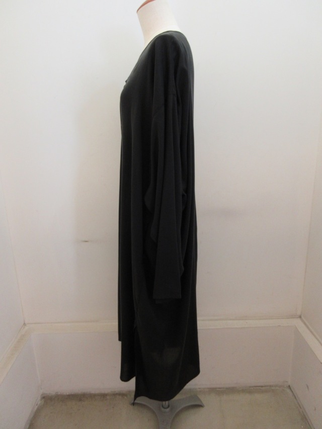 カテゴリー:ワンピース サイズ:1 カラー:ブラック 素材:セルロース100% 日本製 アイテムサイズ 1:総丈106cm/肩幅34cm/バスト150cm/袖丈53cm