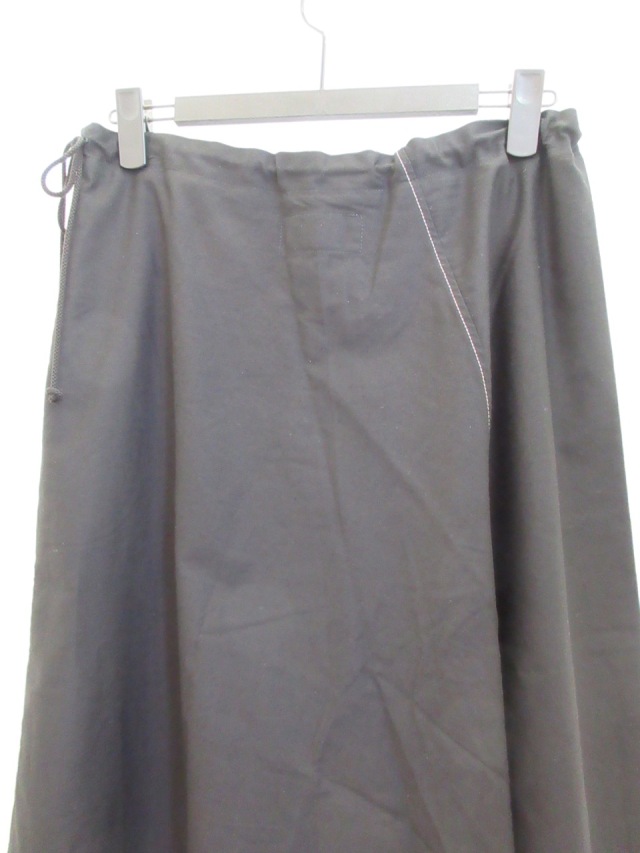 ウエストはフリーサイズで紐でサイズ調整をします。裏地なしのメンツイル素材を使用。