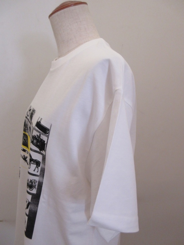 カテゴリー:Tシャツ サイズ:2 カラー: ホワイト 素材:綿100% 日本製 アイテムサイズ 2:着丈68cm/肩幅48cm/身幅97cm/袖丈20cm 手洗い可
