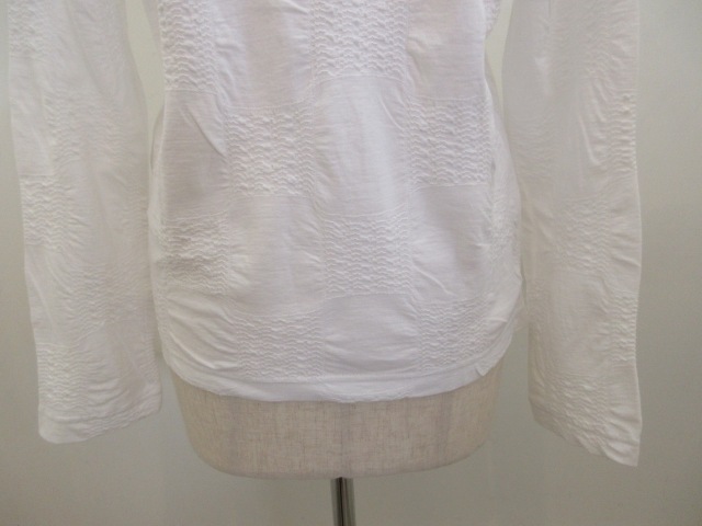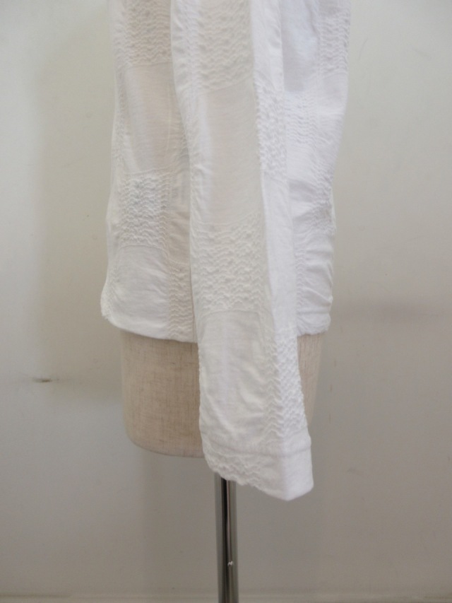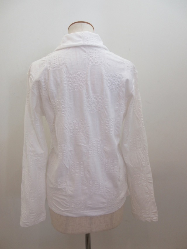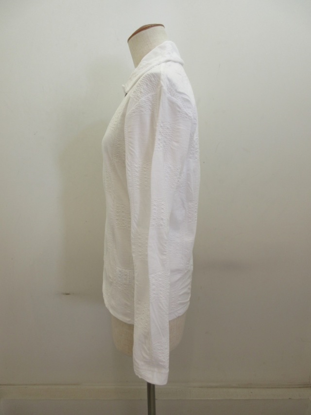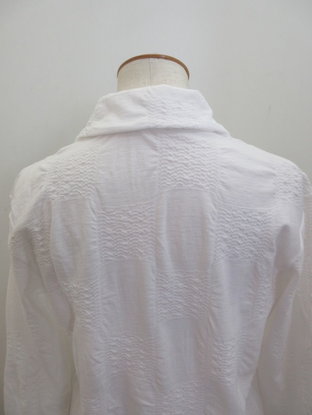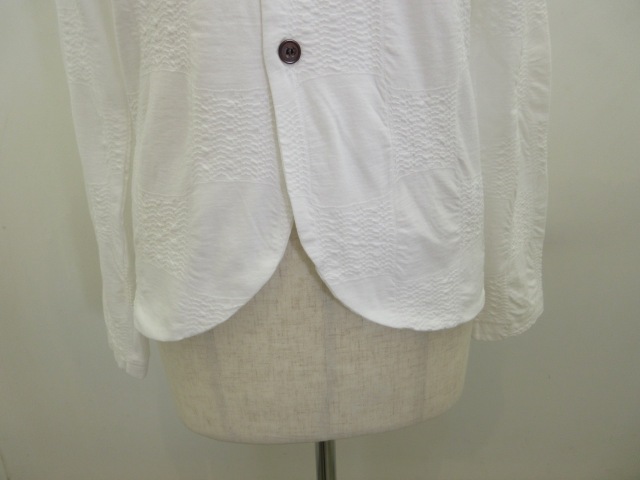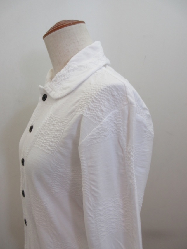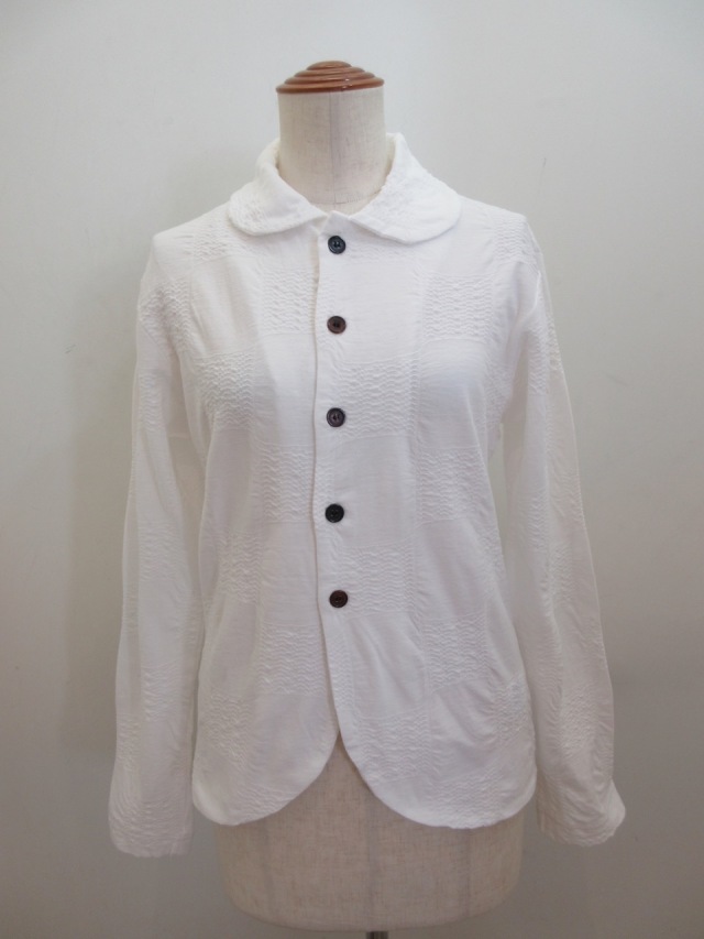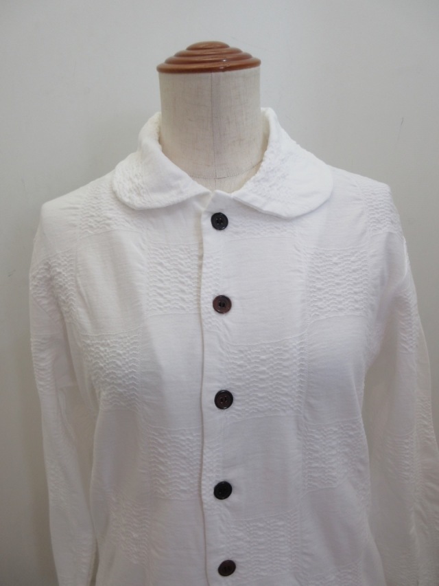 Y's YOHJI YAMAMOTO (ワイズ ヨウジヤマモト) コットンブロックタックジャガード襟付き5釦カーディガン:オフホワイト
