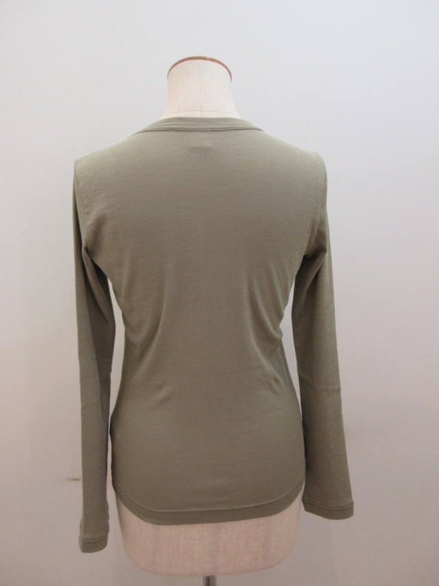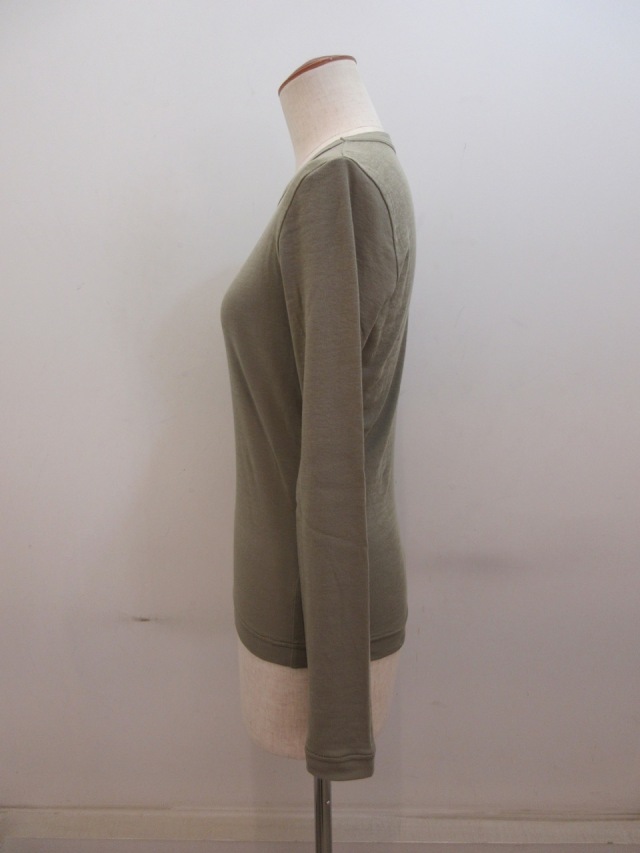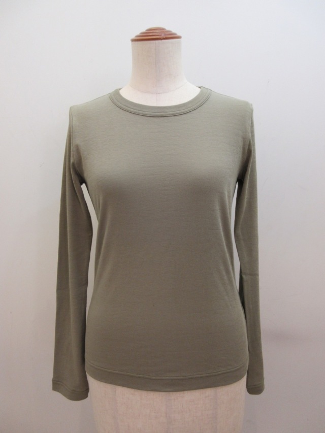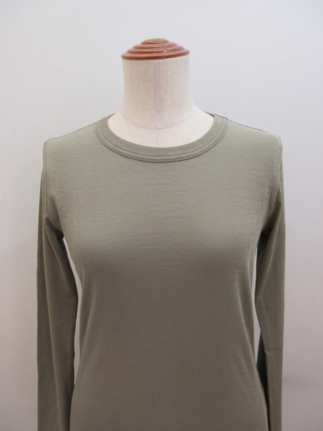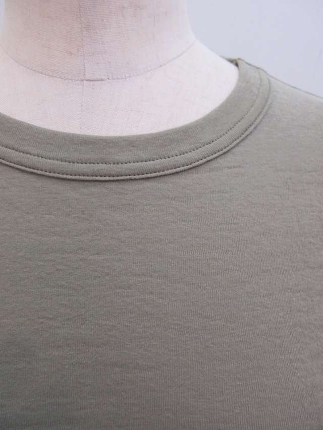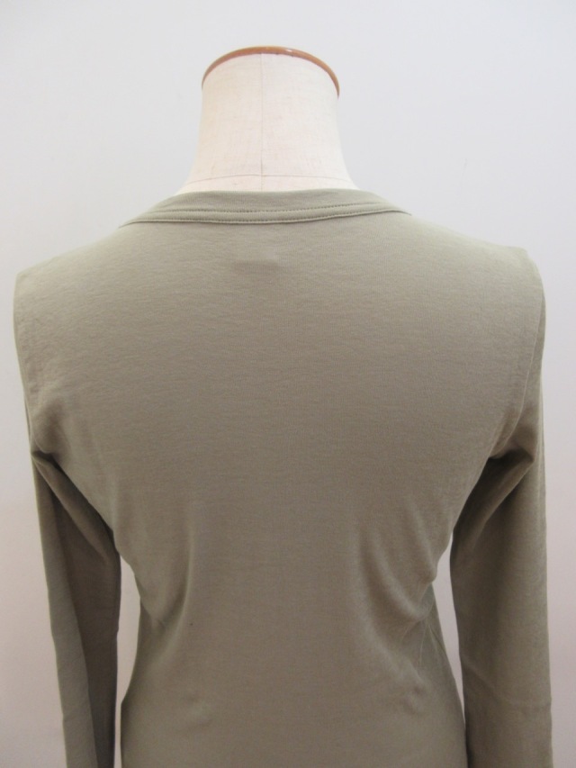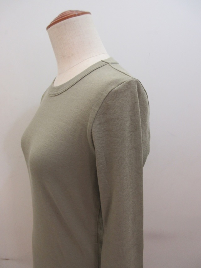 カテゴリー:Tシャツ サイズ:2 カラー:カーキ 素材:綿100% 日本製 アイテムサイズ 2:着丈55cm/肩幅34cm/身幅80cm/袖丈59 手洗い可