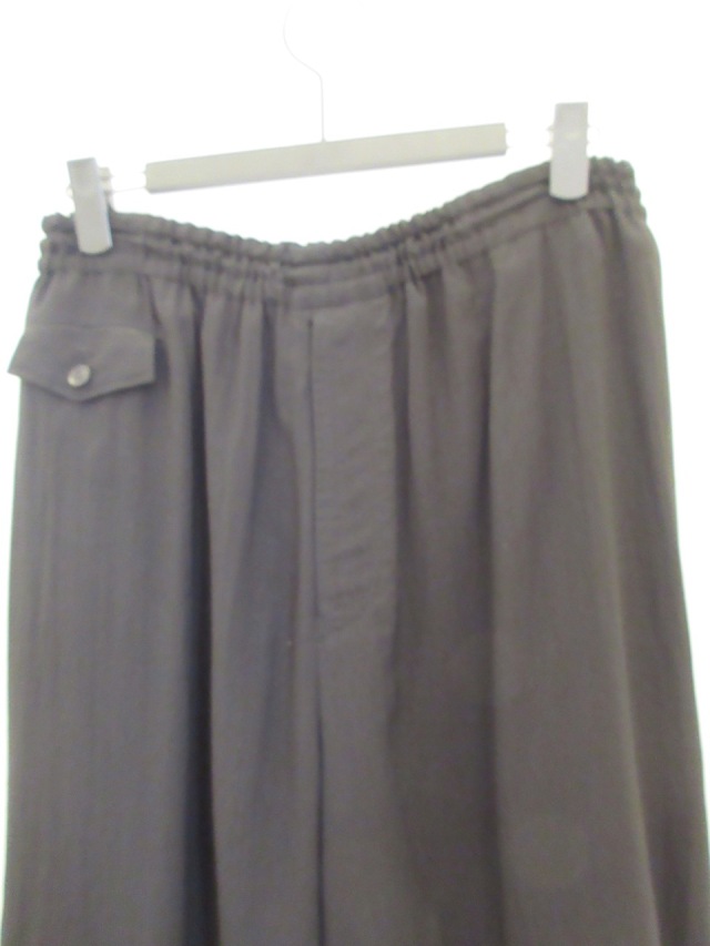 ウエストはゴムと紐が入っていてサイズフリーで履いて頂けます。 両サイドにスラッシュポケととフラップポケット1箇所ついております。