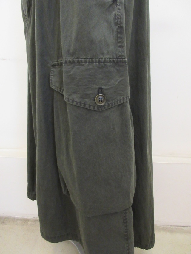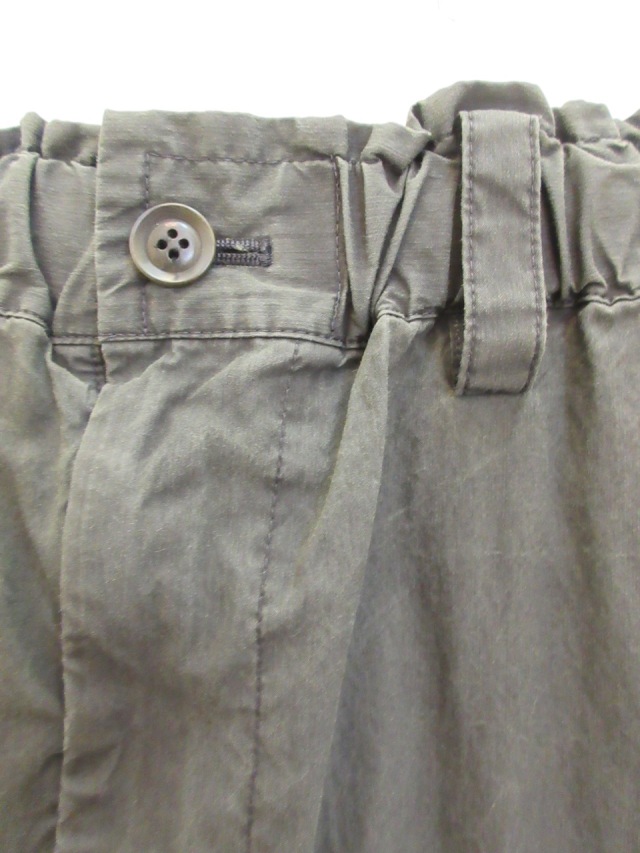 ウエストに平ゴムが入っておりなおlかつ内側に紐が入っておりますのでサイズ調整は可能です。 左側にワークなデザインのアウトポケット付き。 全体的にダメージ加工が施されております。