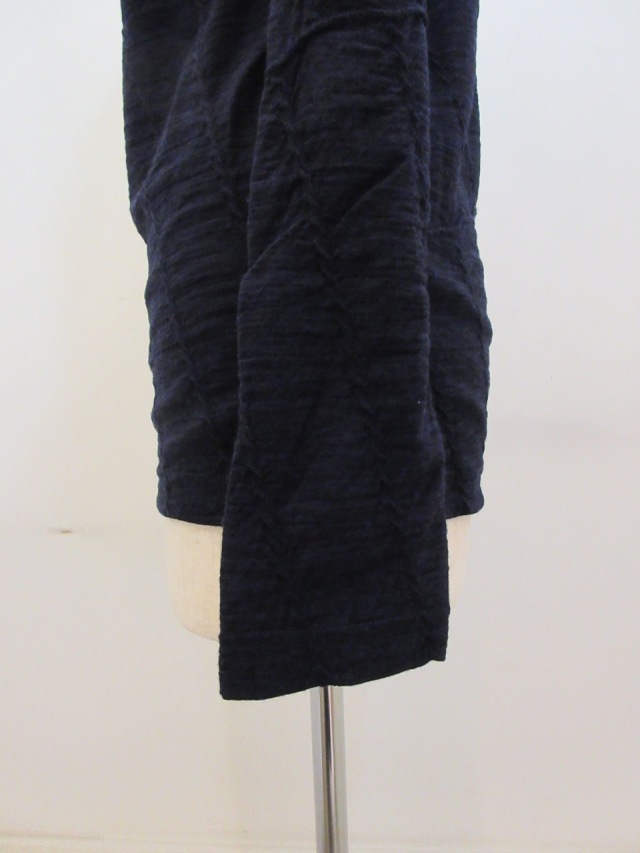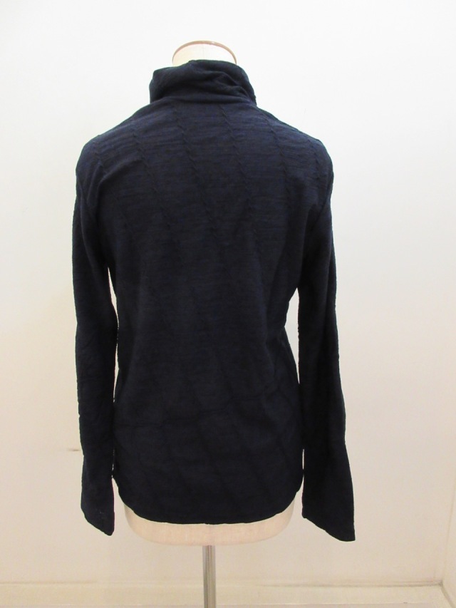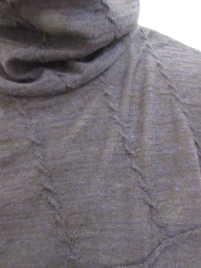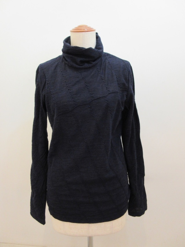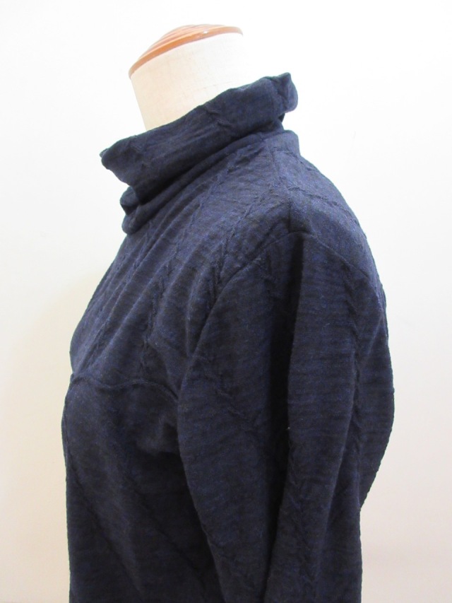 ハイネック、斜めケーブルジャガード織りTシャツ。 ウール素材ですので暖かです。