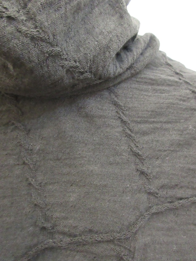 ハイネック、斜めケーブルジャガード織りTシャツ。 ウール素材ですので暖かです。