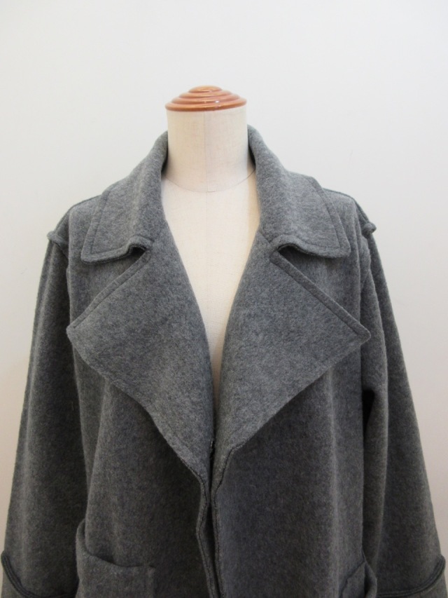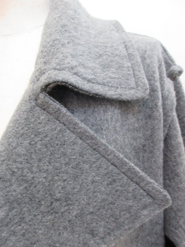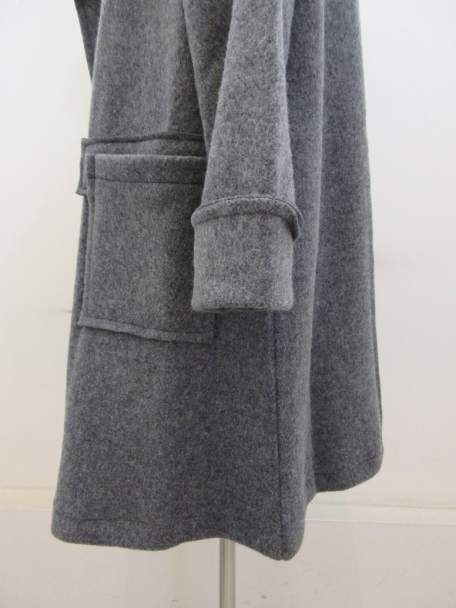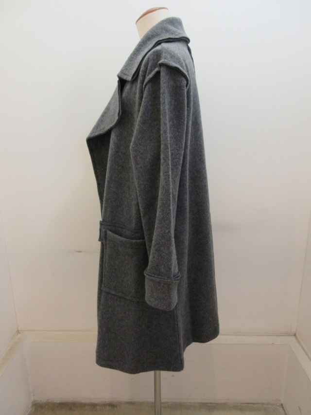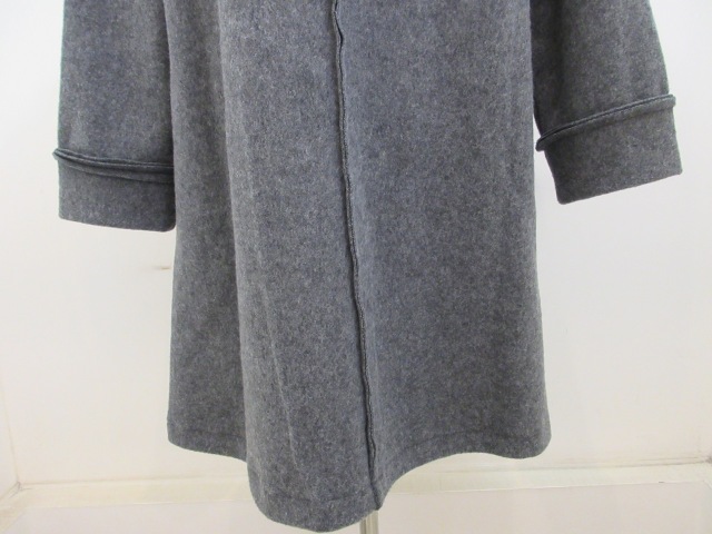 カテゴリー:コート サイズ:2 カラー:グレー 日本製 素材:毛80%/綿20% アイテムサイズ 2:着丈86cm/肩幅44cm/バスト112cm/袖丈53cm