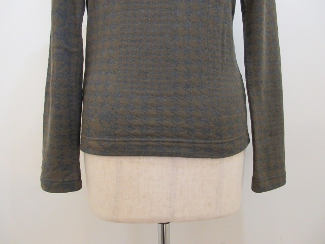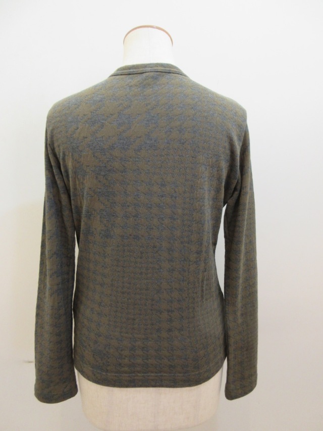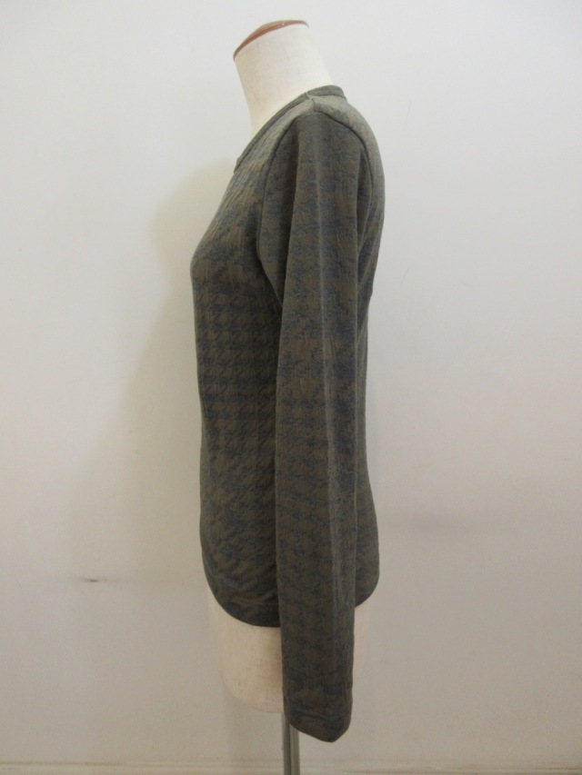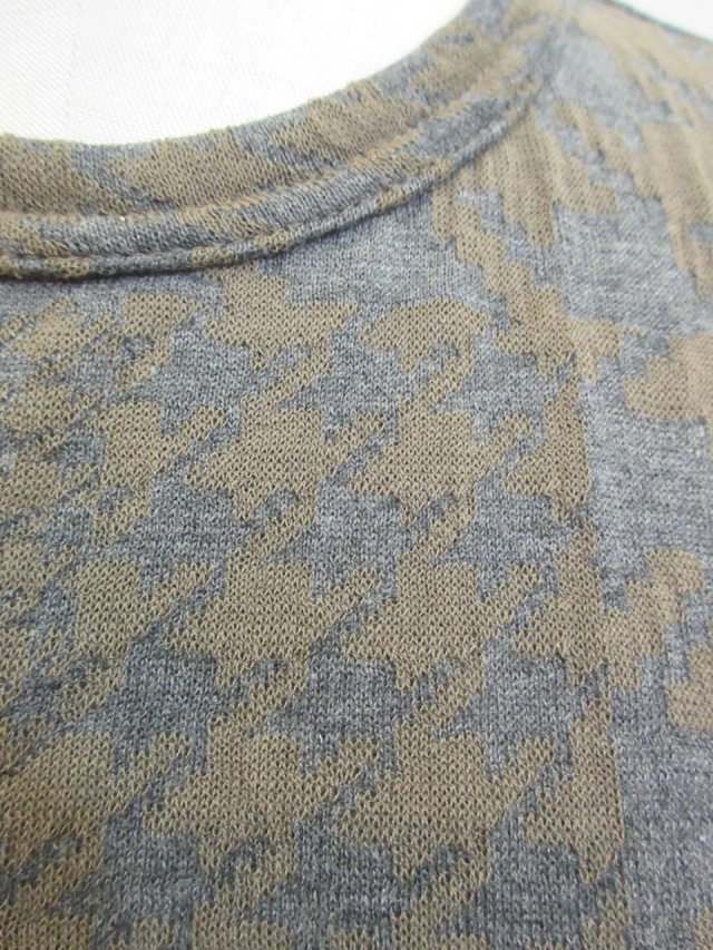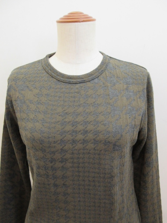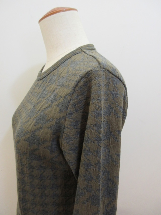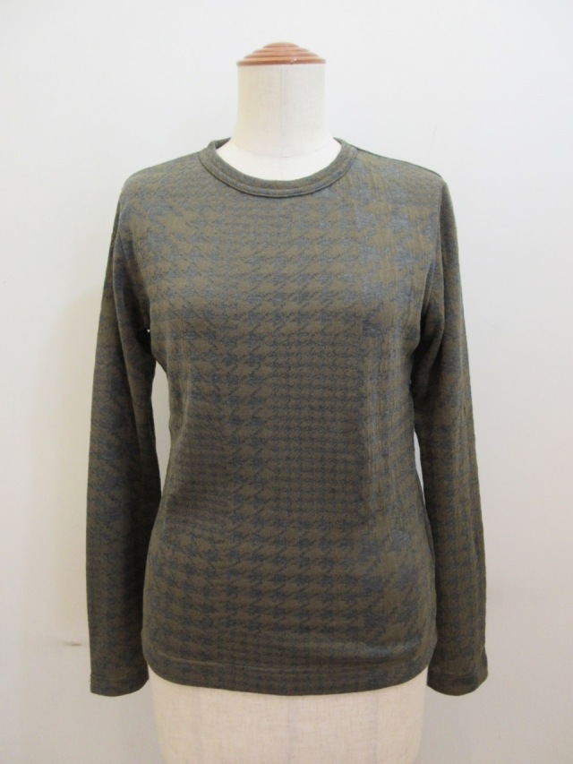 定番のデザインに綿千鳥パッチワークジャガード織りの素材を使った長袖Tシャツ。