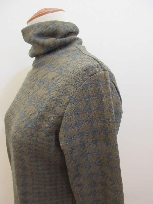 定番のデザインに綿千鳥ジャガード織素材を使ったハイネックTシャツ。