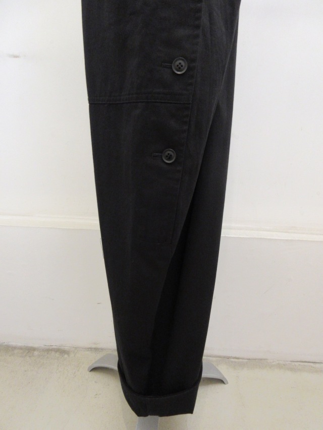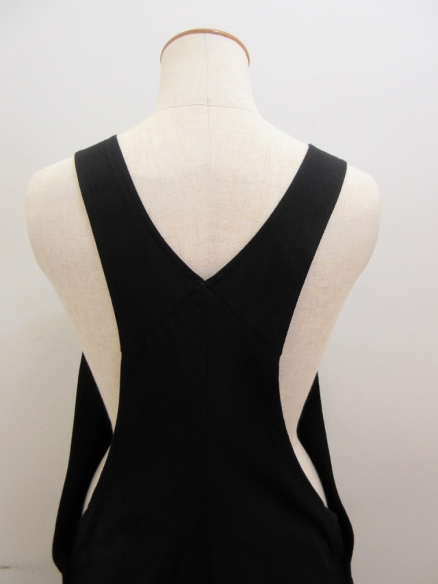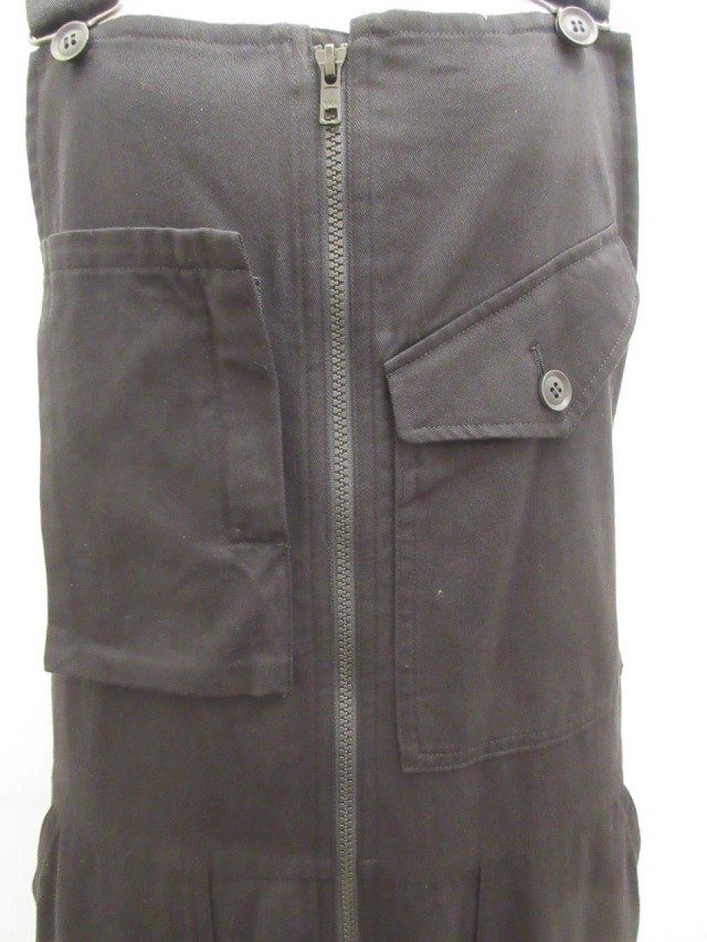 カテゴリー:オーバーオール サイズ:2(M) カラー:ブラック 素材:綿100% アイテムサイズ 2(M):着丈138cm/肩幅30cm/バストフリー/股上83cm/股下62cm/ヒップ118cm 手洗い可
