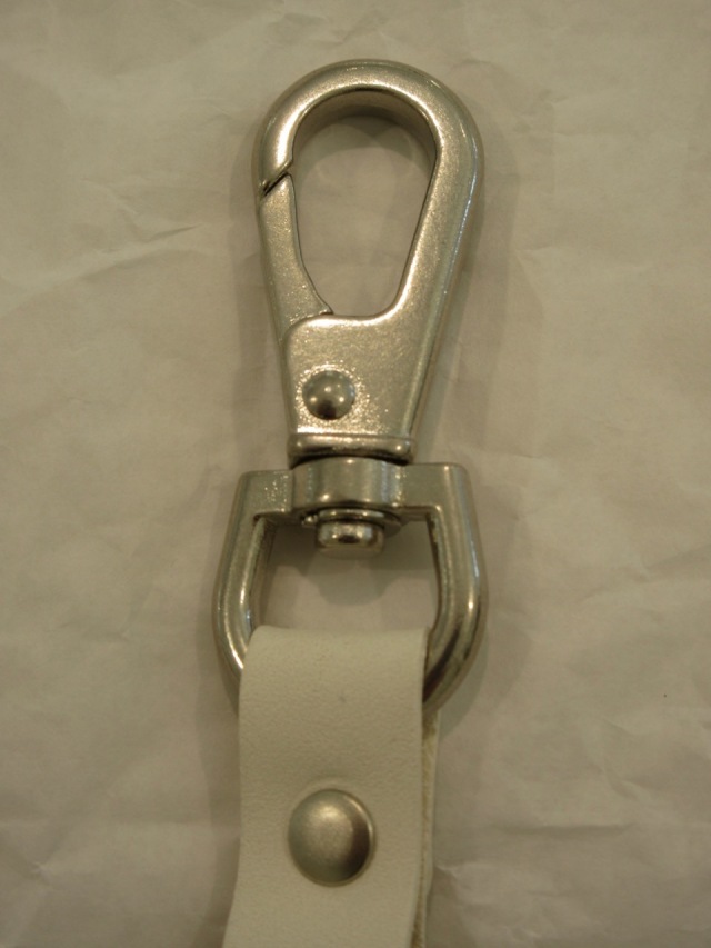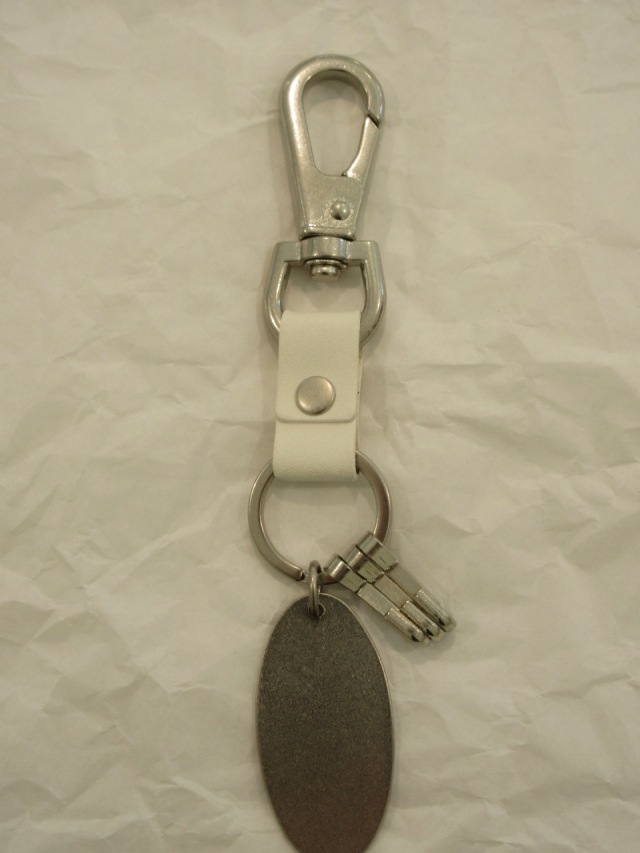 カテゴリー:キーリング サイズ:2 カラー:ホワイト 素材 プレート:真鍮 カラビナ:亜鉛合金 部分使い:牛革 日本製 アイテムサイズ 全長:18cm