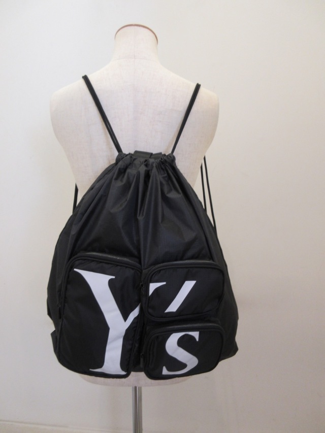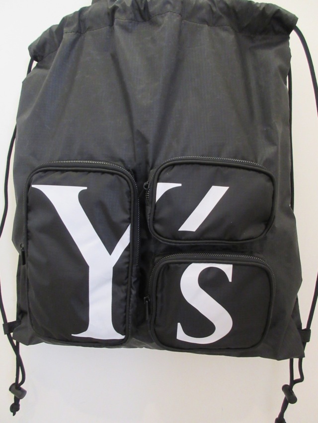 Y’sロゴ入りナップザック。 外側のポケットは3箇所、内側には1箇所のポケットがございます。