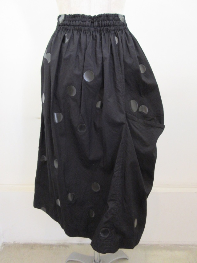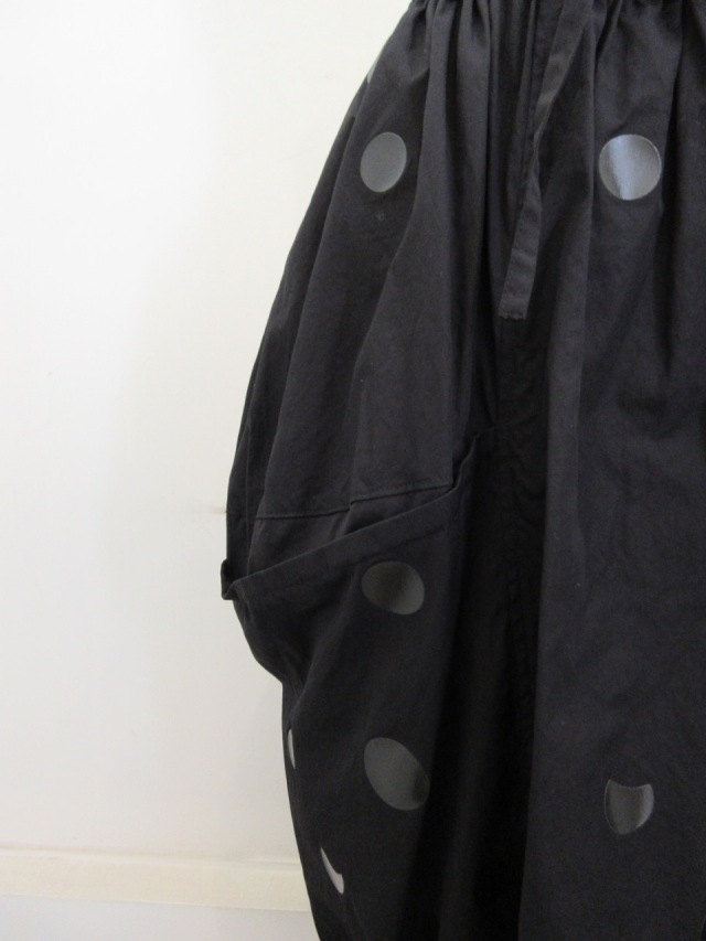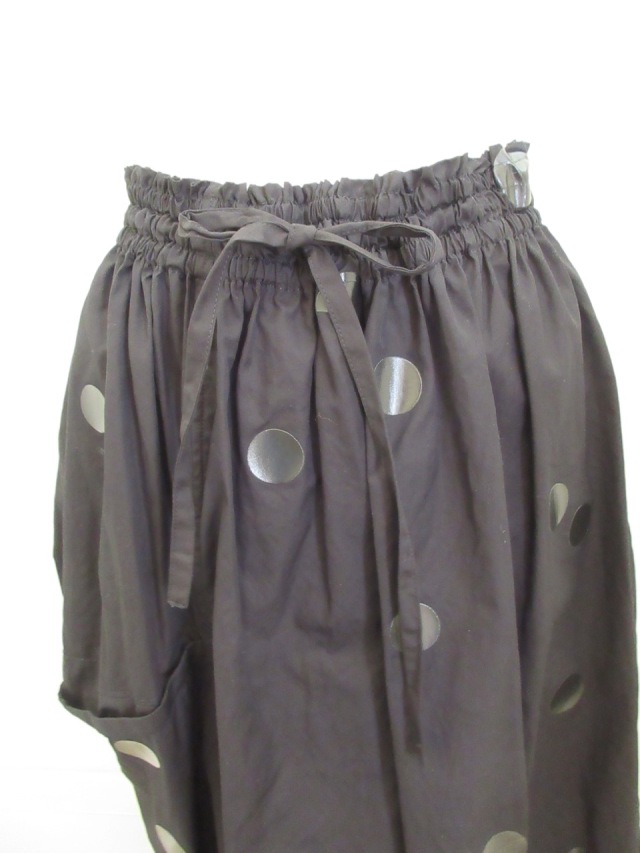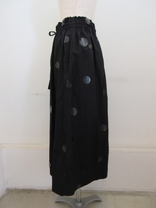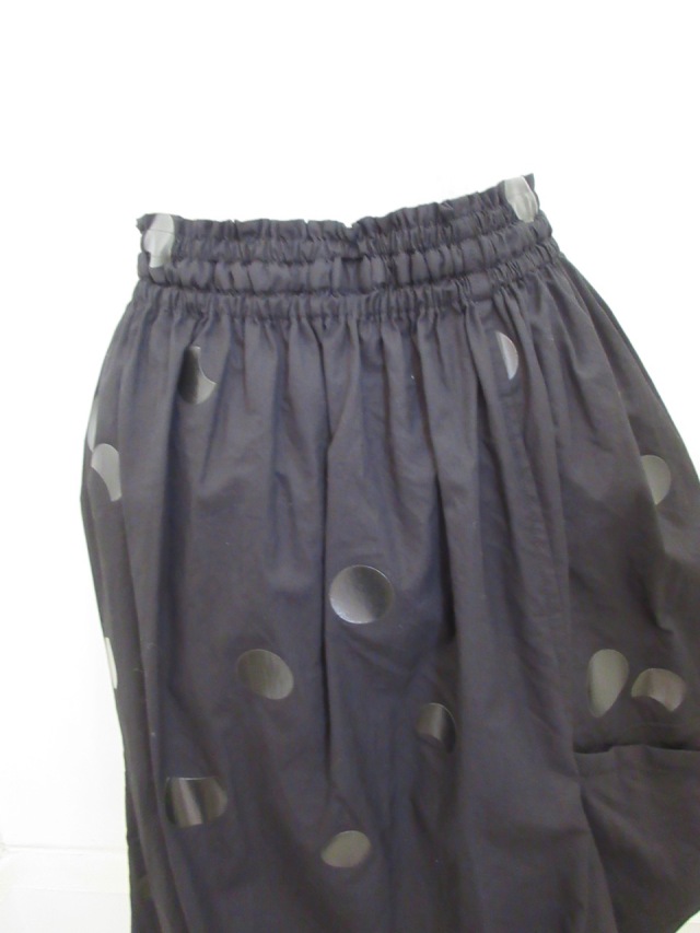 | 製品名 | Y's YOHJI YAMAMOTO (ワイズ ヨウジヤマモト) ブロードドット厚盛顔料プリント製品洗い左タック落ちギャザースカート |