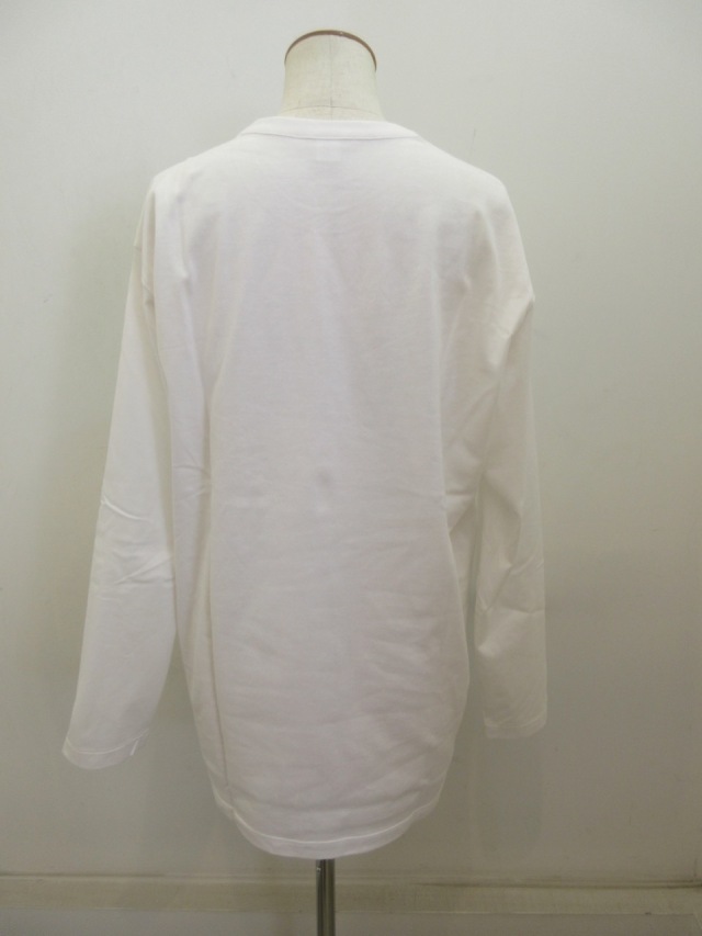 カテゴリー:Tシャツ サイズ:2 カラー: オフホワイト 素材:綿100% 日本製 アイテムサイズ 2:着丈73cm/肩幅48cm/身幅112cm/袖丈58cm 手洗い可