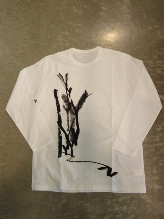 大小のYの字を重ね筆書きしたアート感のある、プリントTシャツ。